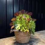 Composición decorativa de suculentas, perfecta para aportar un toque natural y moderno a cualquier espacio. Su forma armoniosa y colores suaves la convierten en una opción ideal para regalar o decorar. Plantas resistentes y de bajo mantenimiento, perfectas para el día a día.