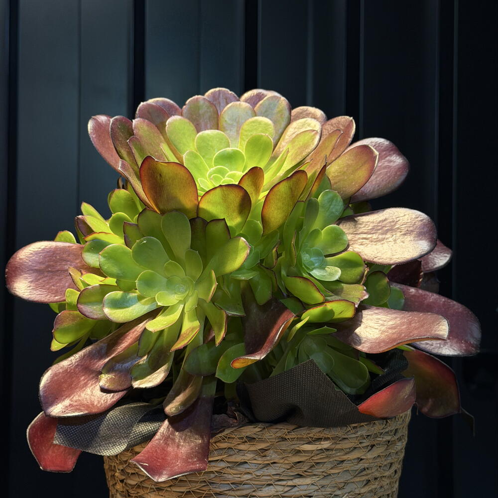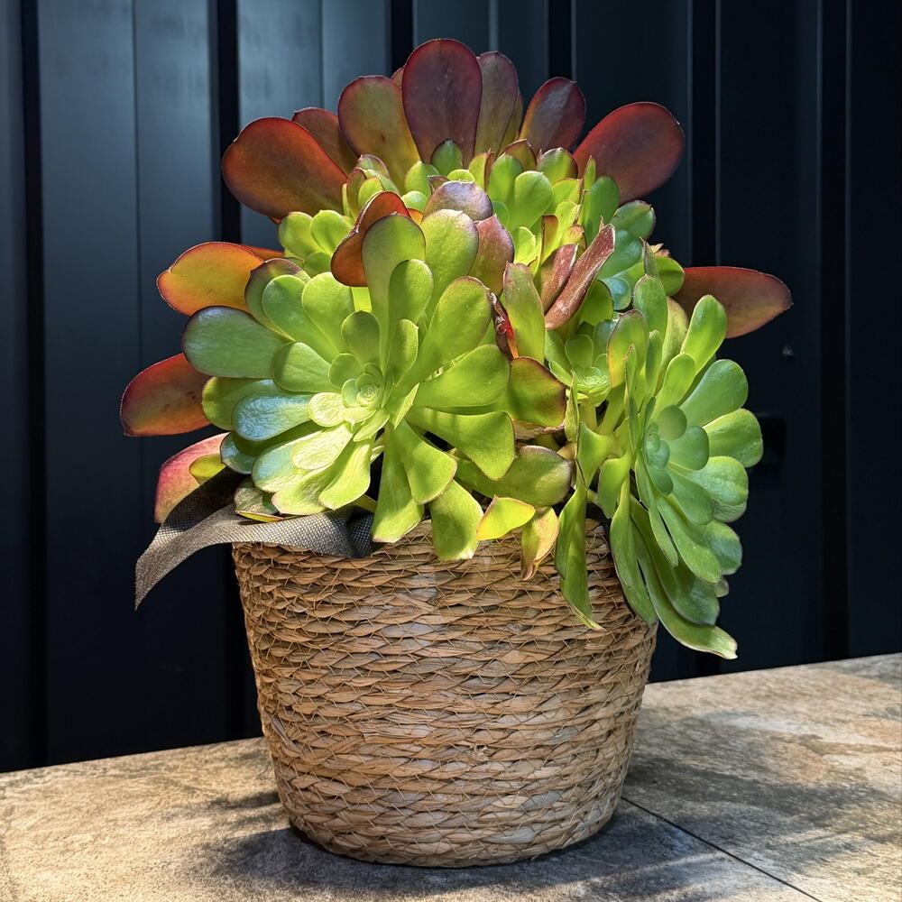 Composición decorativa de suculentas, perfecta para aportar un toque natural y moderno a cualquier espacio. Su forma armoniosa y colores suaves la convierten en una opción ideal para regalar o decorar. Plantas resistentes y de bajo mantenimiento, perfectas para el día a día.