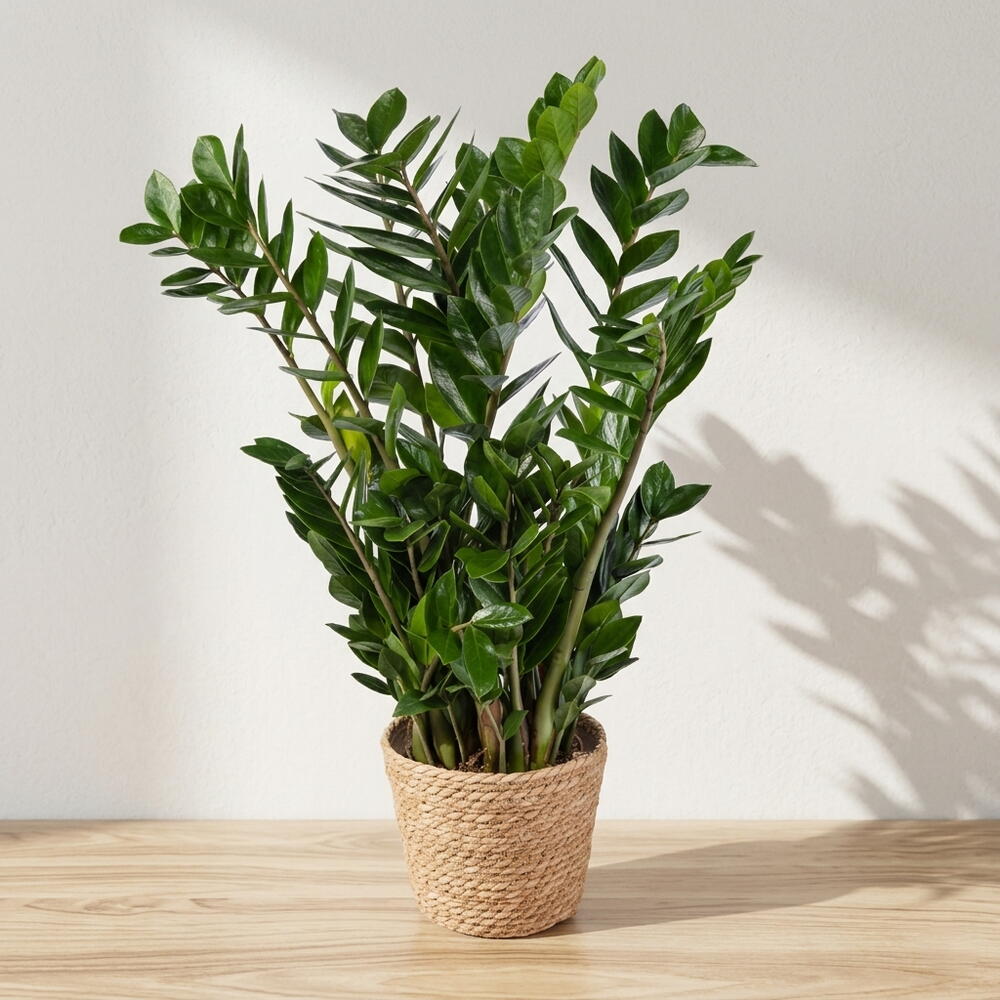 Esta majestuosa planta Zamioculcas destaca por su elegancia natural y su intensa tonalidad verde. Sus hojas brillantes y estructuradas aportan un toque moderno y sofisticado a cualquier espacio. Es una opción perfecta para interiores, ya que combina belleza con gran resistencia. Su presencia transmite equilibrio, frescura y armonía en el ambiente. Ideal tanto para hogares como oficinas, donde añade vida sin requerir cuidados complejos. Su maceta decorativa complementa el estilo natural de la planta. Una elección práctica y estética que perdura en el tiempo.