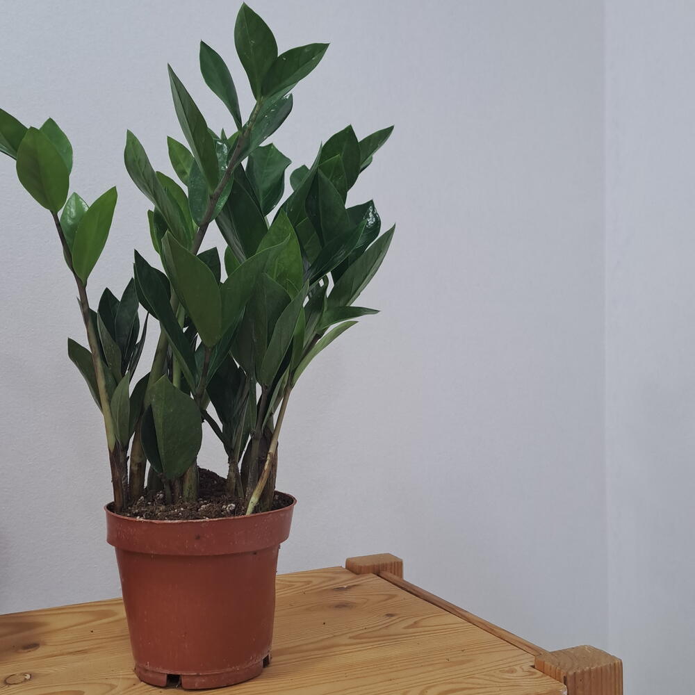 Zamioculca, una planta de interior elegante y muy resistente. Sus hojas verdes, brillantes y estructuradas aportan un toque moderno y natural a cualquier espacio. Perfecta para decorar hogares, oficinas o para regalar, ya que requiere muy poco mantenimiento. 🌿