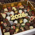 Большая коробка, которая говорит обо всём, не говоря слишком много. Berry Grand Signature — наш квадратный формат 30 × 30 см с примерно 45 клубниками, политых разными видами шоколада, в сочетании с ягодами и топпингами для потрясающего микса текстур (хрустящий, кремовый, фруктовый). Центр полностью персонализируется: имя, инициалы, возраст, дата или короткая фраза (типа «TE AMO», «I LOVE YOU», «BE MY VALENTINE»…). И как всегда, 100 % настраиваемый: вы выбираете палитру цветов (классический красный, розовый, black gold…), тип шоколада и стиль (minimal vs. full toppings). Количество клубник ориентировочно в зависимости от калибра. И, разумеется, всё без глютена.