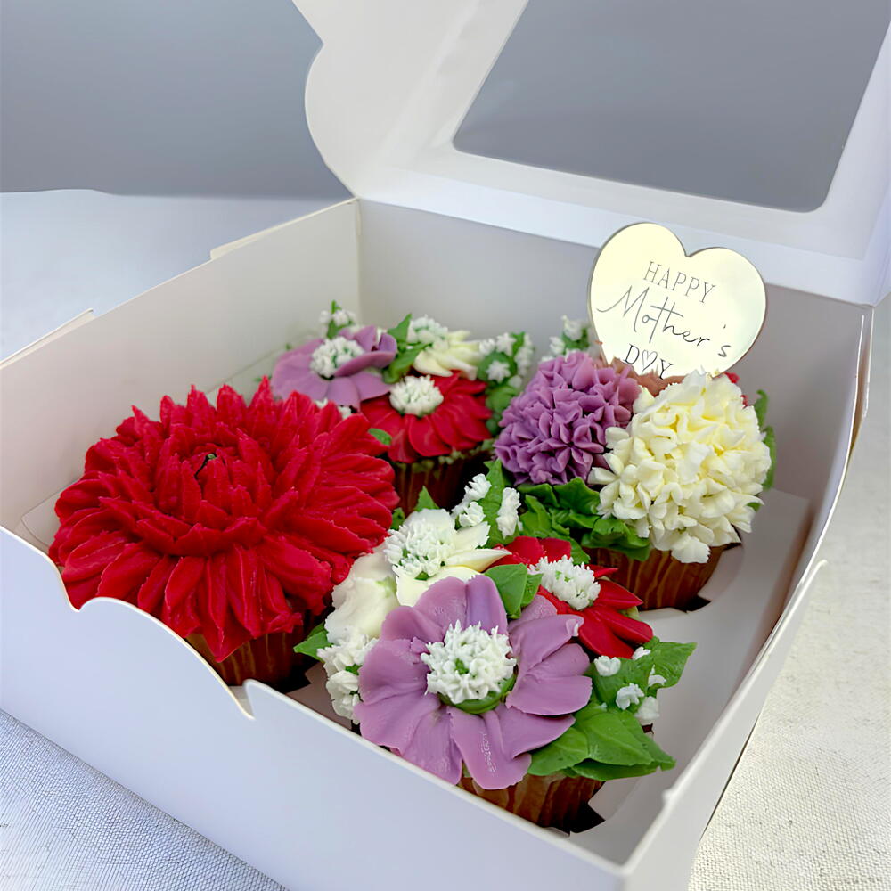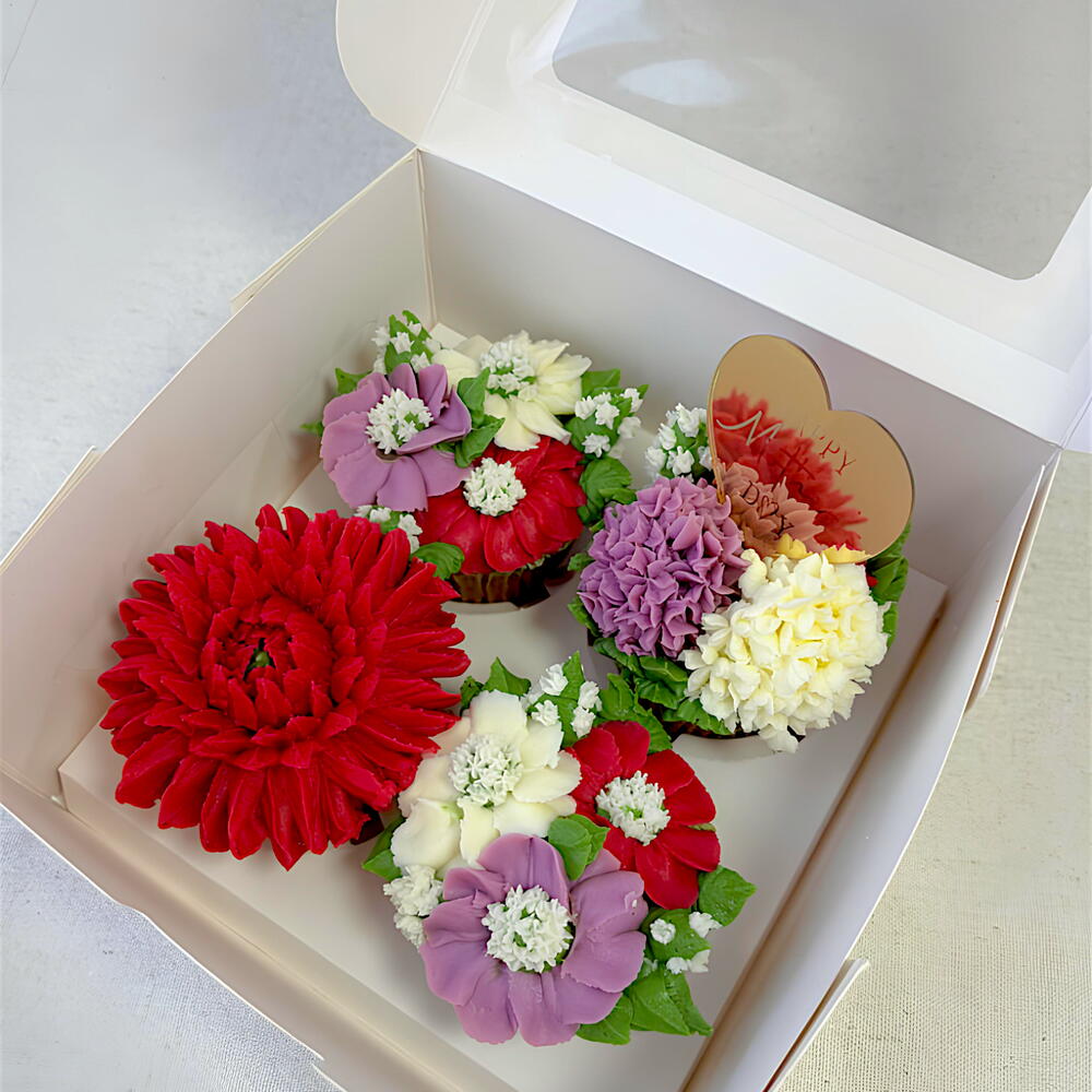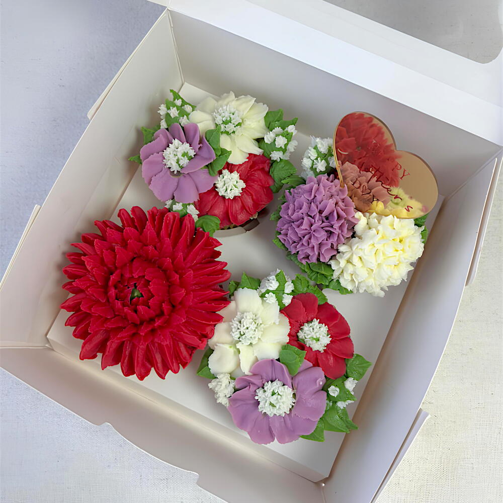 🌸️ Коробка с цветами для мамы – 4 капкейка