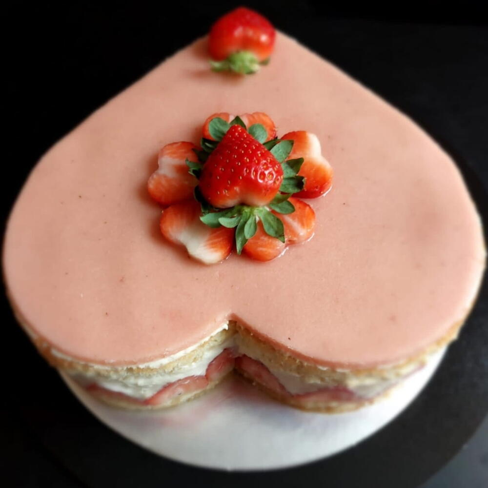 Насладитесь изысканностью наших тортов, приготовленных из свежих и первоклассных ингредиентов. Они изготовлены на нежной и хрустящей мучной основе, деликатно подслащены сахаром и обогащены свежими яйцами. Но то, что делает их по-настоящему особенными, — это кремовая и нежная прослойка крема дипломат с клубникой, которая придаёт каждому кусочку несравненный вкус. В качестве финального штриха мы добавляем вокруг торта свежую и сочную клубнику. Сверху, для сладкого послевкусия, небольшой слой марципана, украшенный свежей клубникой. Эти торты — настоящее лакомство, которое заставит вас вернуться за добавкой.