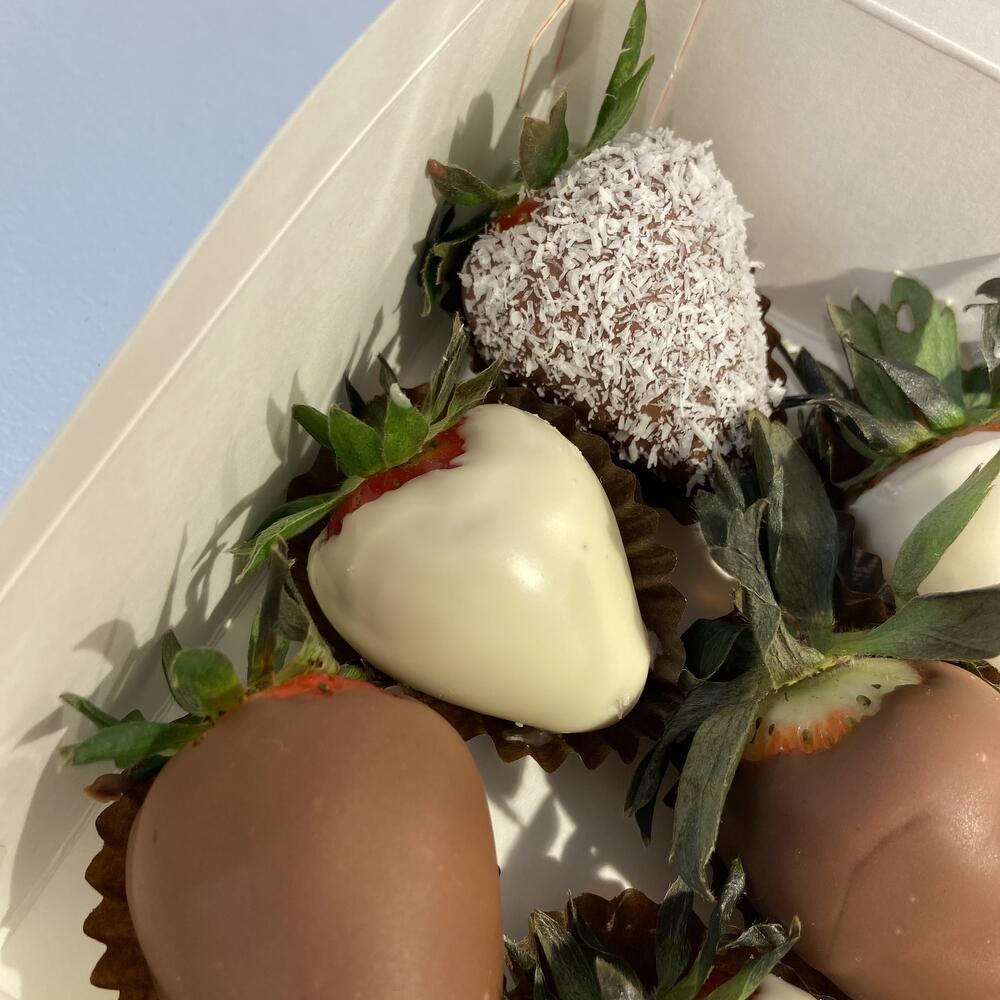 Set de fresas en chocolate belga con leche, arándanos y trozos de fresa ¡Un regalo delicioso y encantador para sorprender a alguien especial! Este set es perfecto para regalar a una mamá querida, abuela, hija, hermana, compañera de trabajo o pareja. Un detalle que no dejará a nadie indiferente. Cada composición la preparamos con el mismo cuidado y amor, como si fuera para nuestros seres más cercanos. Ideal para cualquier ocasión especial: cumpleaños, aniversario, Día de la Madre o simplemente para endulzar el día de alguien.