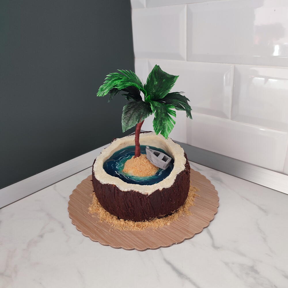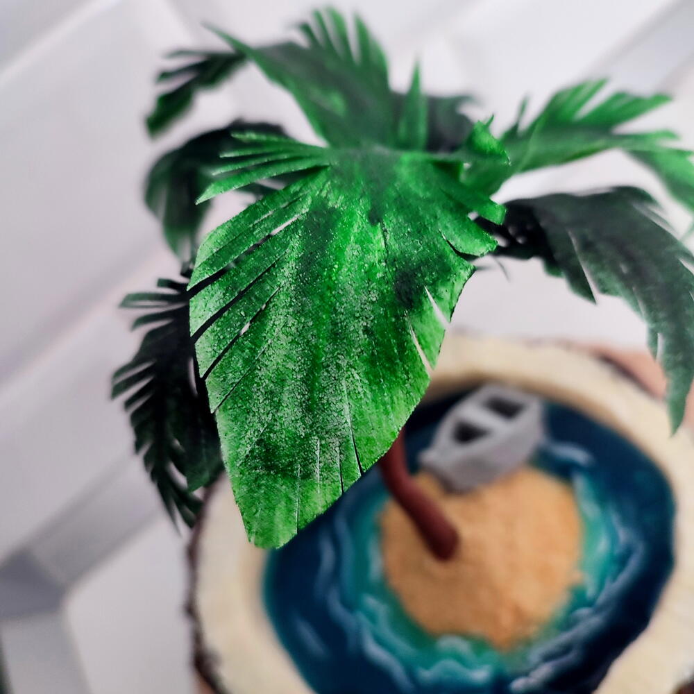 Прекрасный торт с тропическим декором и пальмой на рисовой бумаге.