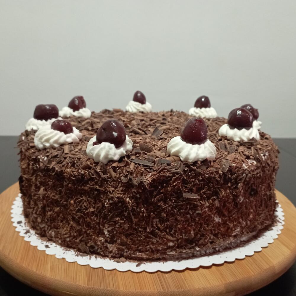 Побалуйте себя этим тортом — классикой французской кондитерской, приготовленным из ингредиентов первоклассного качества, таких как крем, вишни, свежие яйца... Превосходный торт, состоящий из 3 слоёв шоколадного бисквита с начинкой из крема шантильи и вишен в сиропе; торт покрыт кремом шантильи, кандированными вишнями и шоколадной стружкой. Это десерт, полный вкуса, для любителей шоколада и свежести крема шантильи. Не упустите возможность порадовать своих близких!