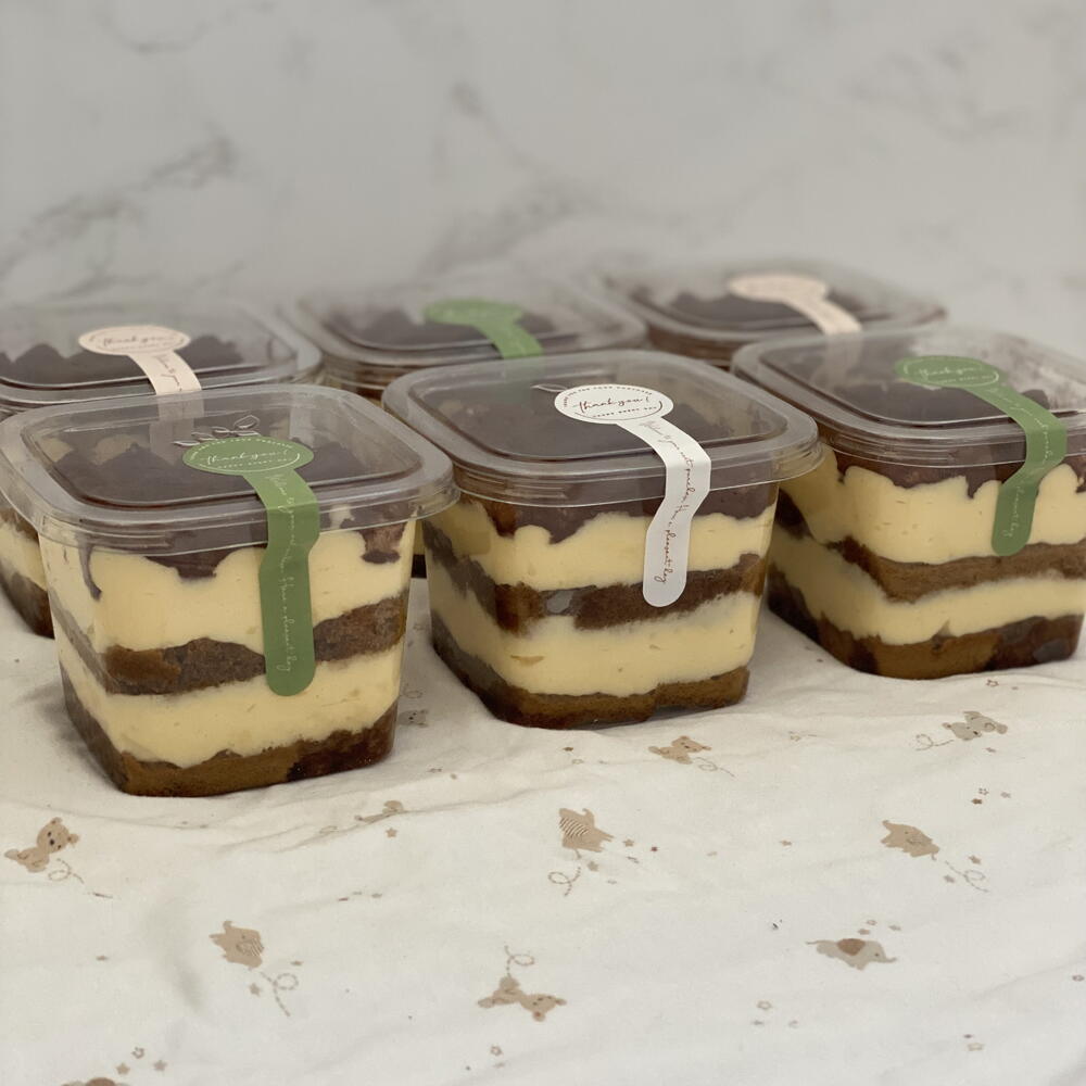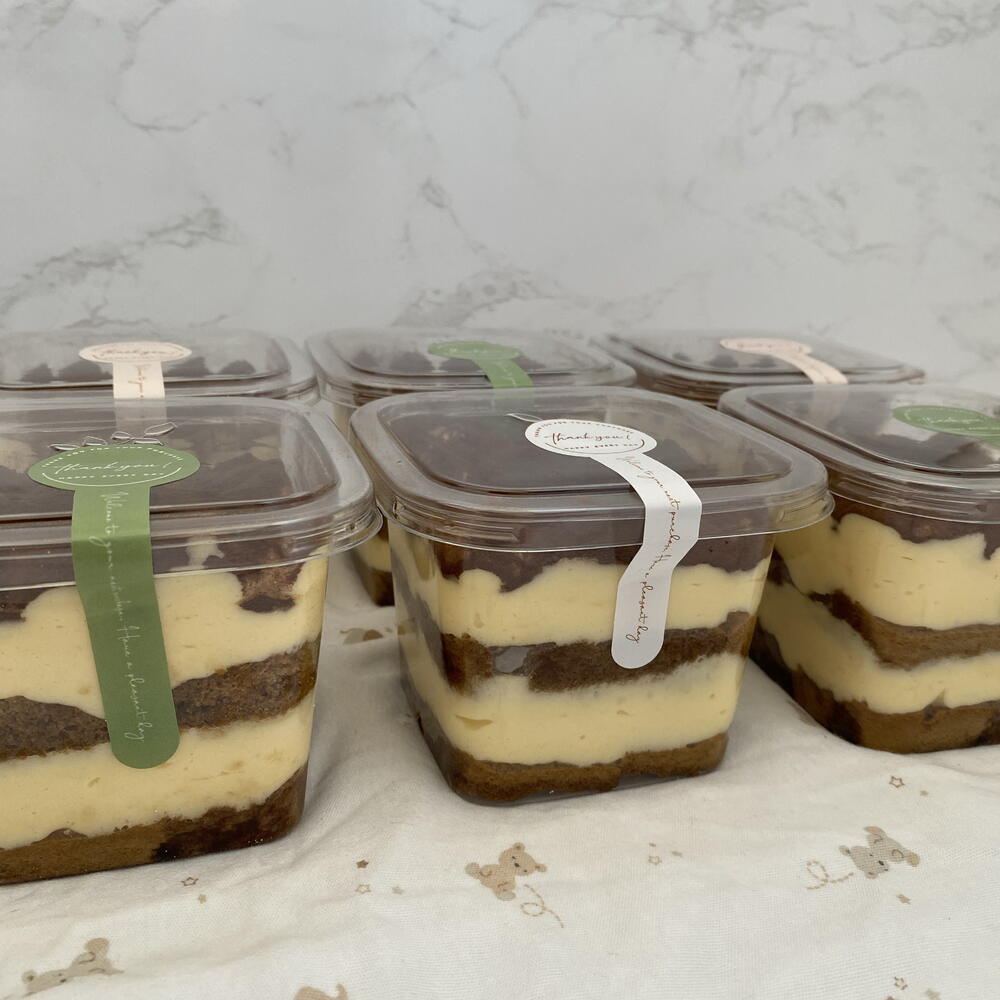 Маскарпоне, яйца, эспрессо, сахар, пастеризованный яичный белок, пшеничная мука, чистый какао-порошок. Аллергены: яйцо, молоко, глютен