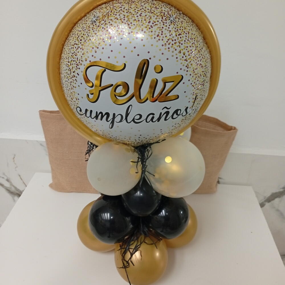 Букет из золотых и чёрных воздушных шаров на день рождения