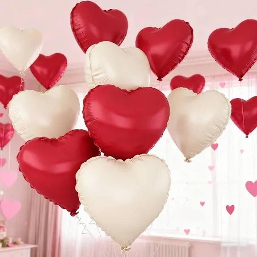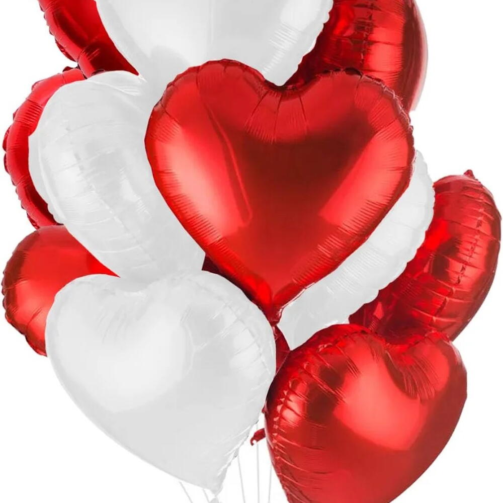 Романтичный набор шаров-сердец красного и белого цветов