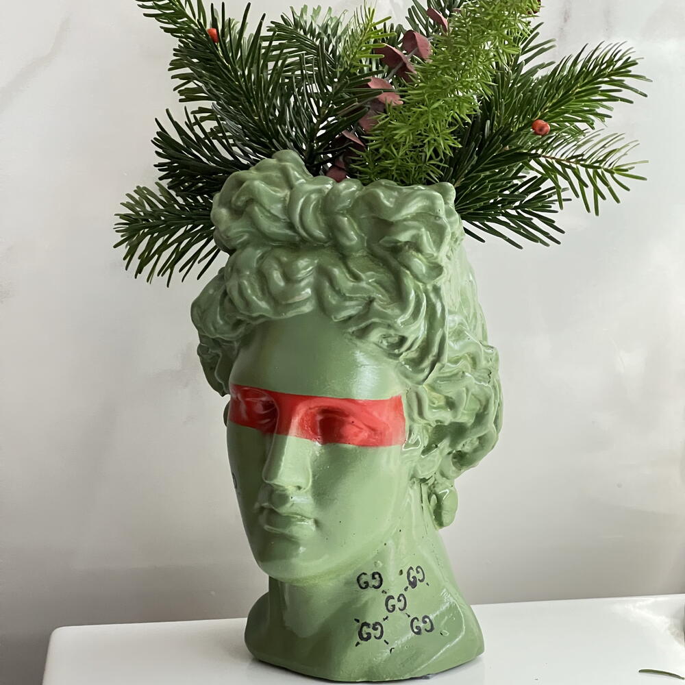 Maceta de yeso del busto de Apoyo Se puede usar como: organizador de pinceles y suministros de oficina; jarrón de flores; maceta para plantas; elemento decorativo para su hogar/oficina/establecimiento/jardín/terraza. Decoración para el hogar, estatuilla, figura, busto de yeso. ¡Pertecto como regalo! Altura 22 cm, Dentro 8*8 cm
