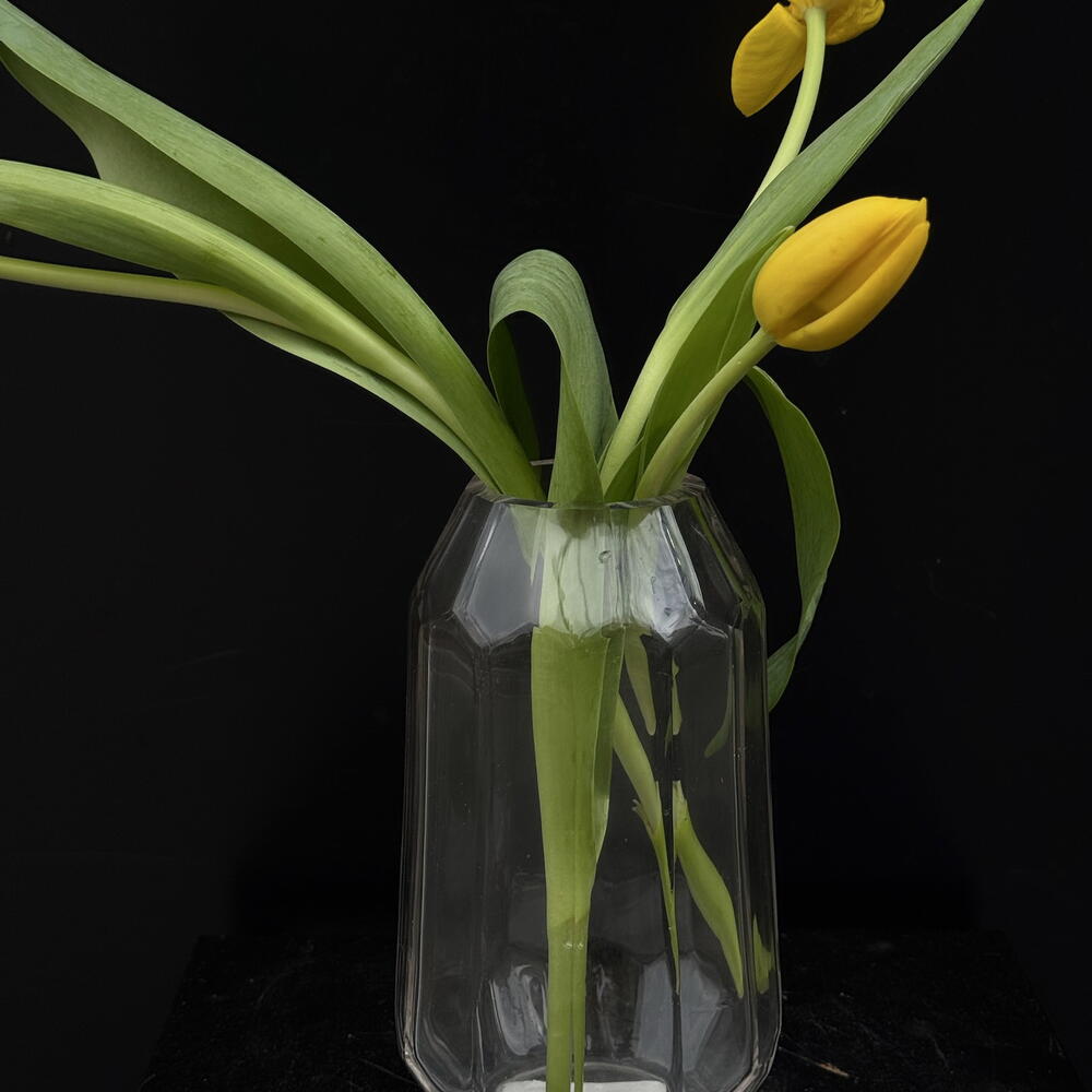 El jarrón transparente con facetas es un elegante elemento decorativo de vidrio con superficies facetadas que reflejan la luz. Su diseño moderno resalta la belleza de flores y arreglos, adaptándose a cualquier estilo de interior. 🌸 *También disponible en versión más grande.