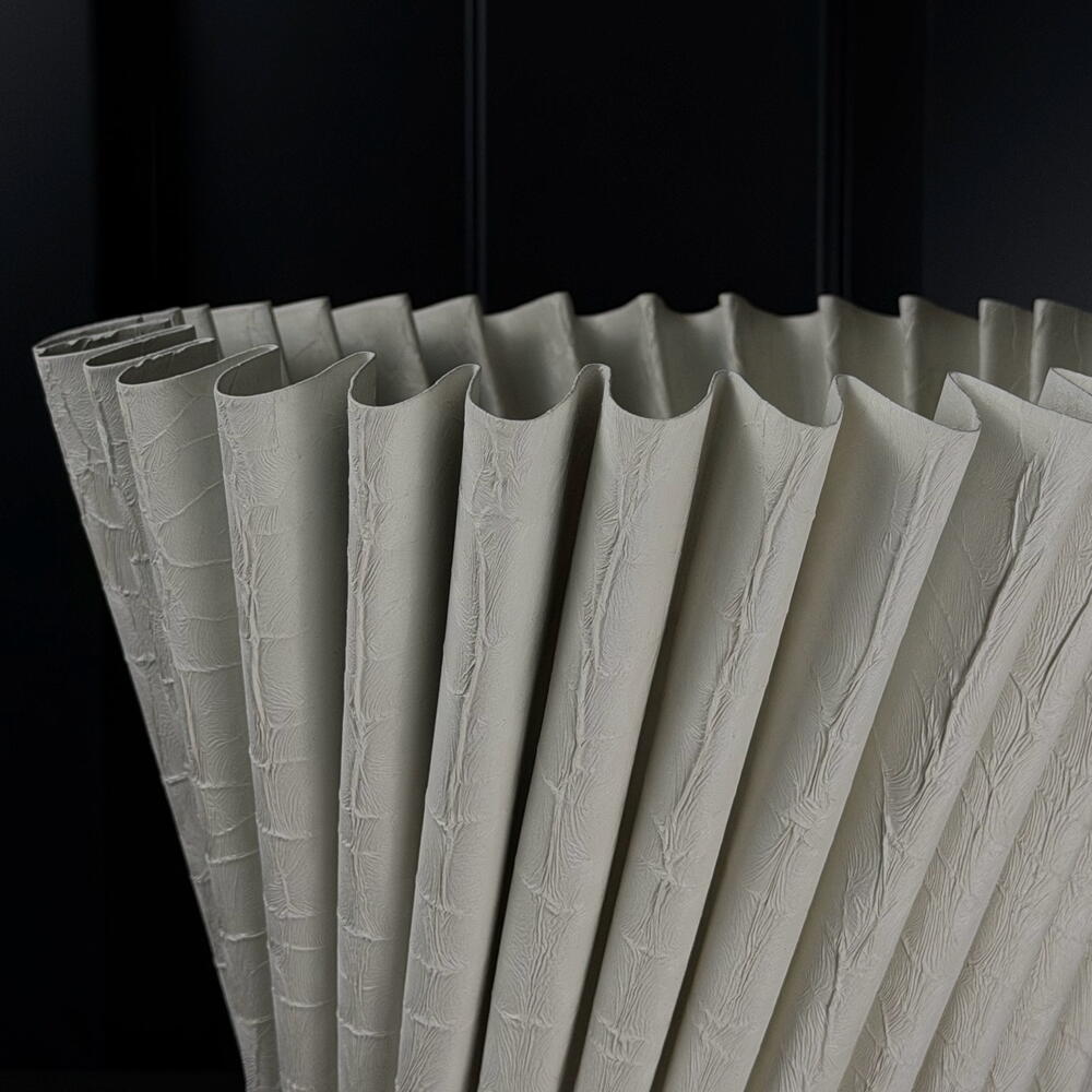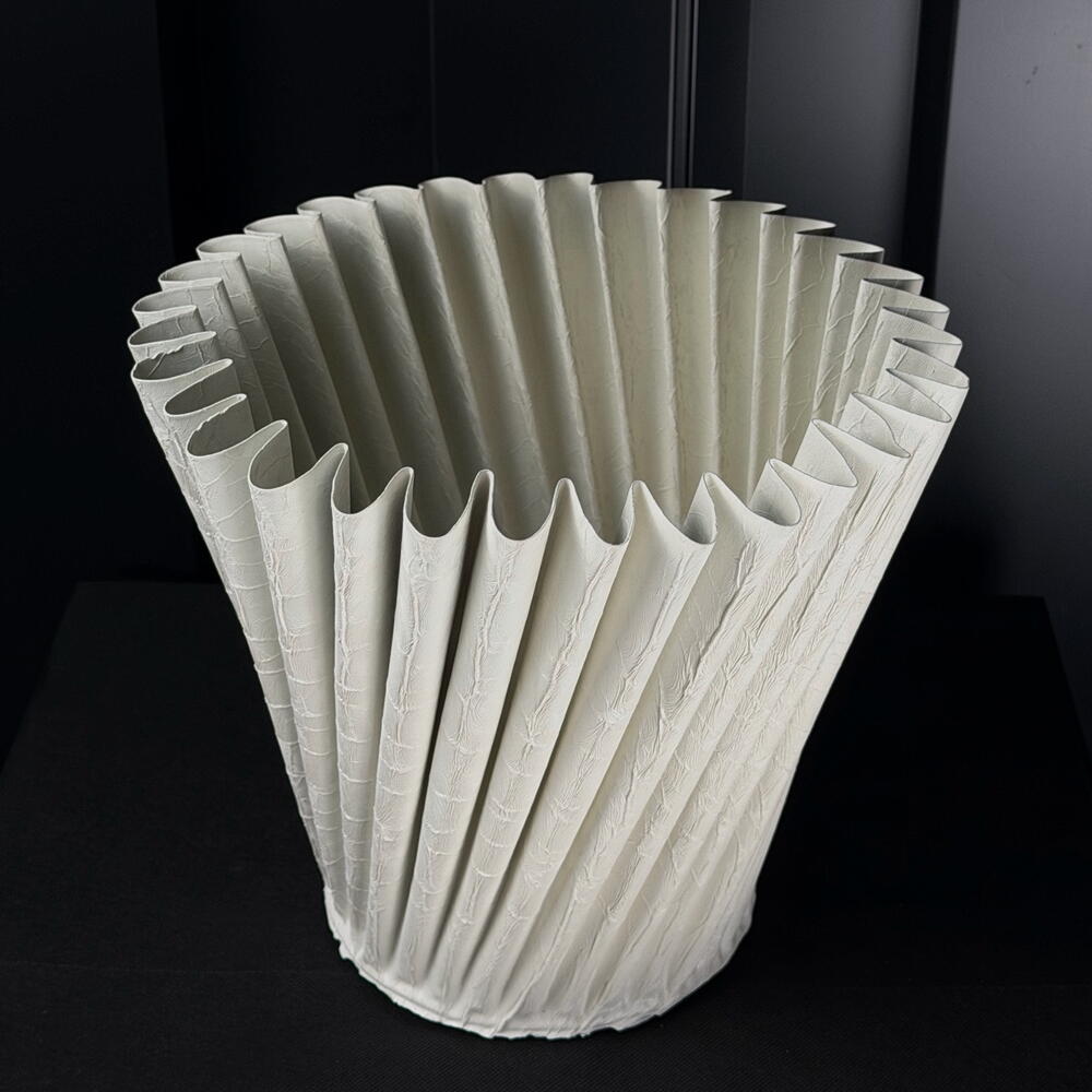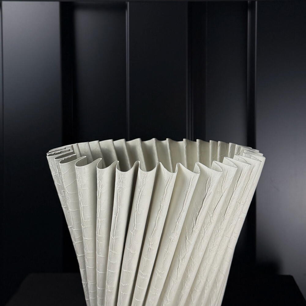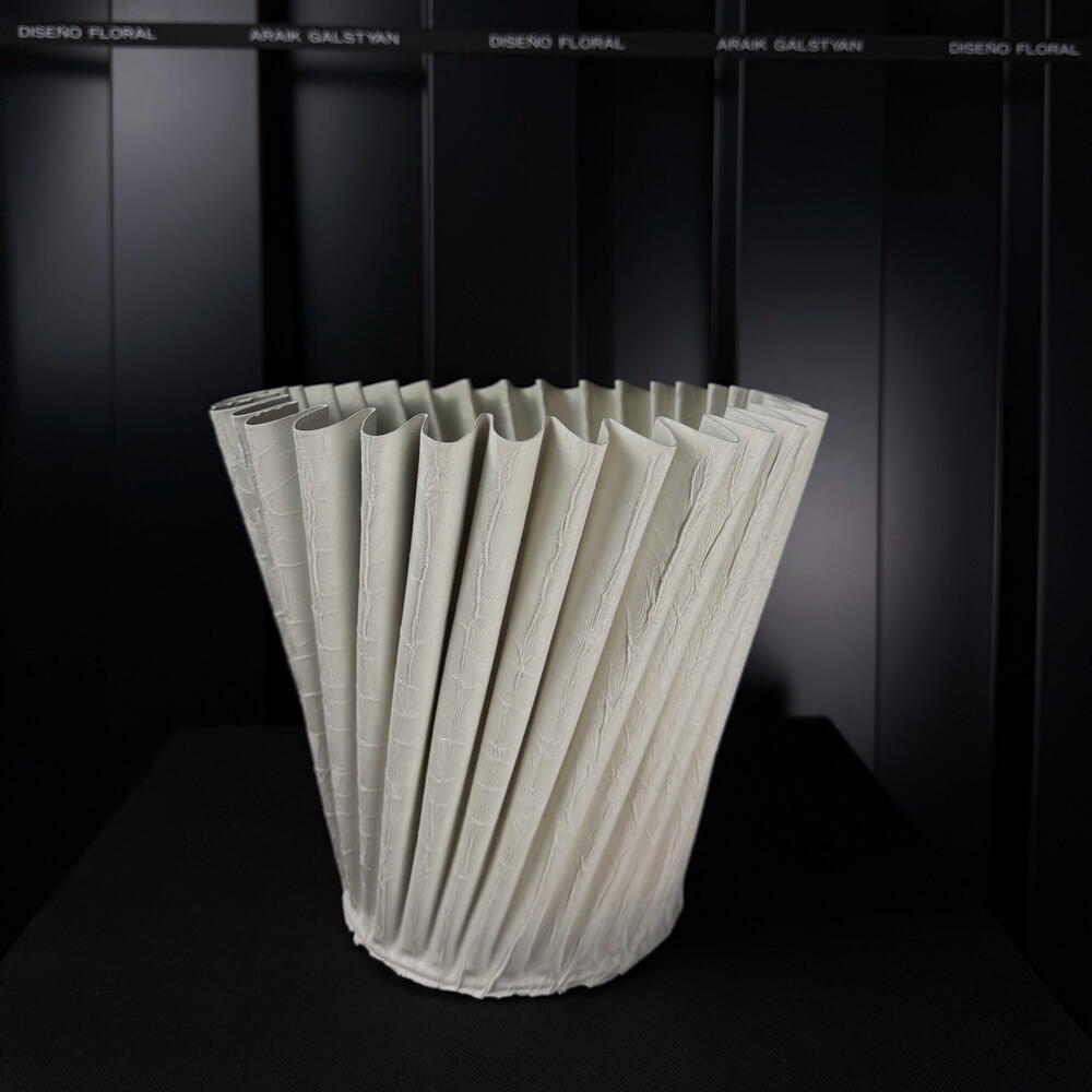 Maceta d27 metal blanca mate con relieve ondulado de ARAIK GALSTYAN