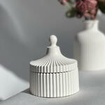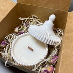 Esta vela natural de alta calidad está hecha 100% con cera de soja y mecha de madera. El tarro está hecho de yeso natural. Es genial en cualquier interior. Es hermoso en cualquier habitación. Este es el mejor regalo. Aroma: de bosque de pinos Cera 85grs Tiempo de combustión de velas 20 horas