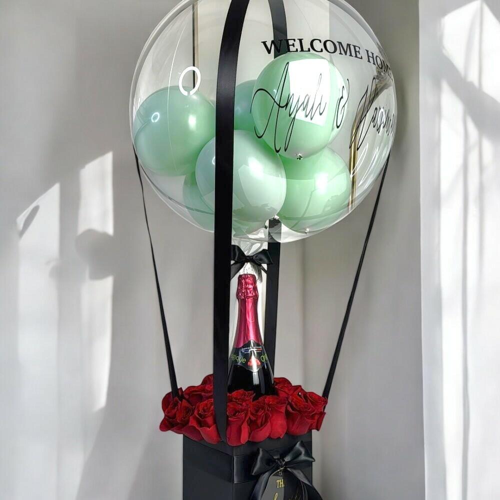 Удивите уникальным и изысканным подарком: эта элегантная коробка с 30 красными розами, игристым вином и персонализированным воздушным шаром идеально подходит для празднования годовщин, новоселья, дня рождения или любого другого особого случая. Этот набор излучает роскошь и романтику, выделяясь безупречным внешним видом и персонализированным посланием, которое добавляет нотку интимности и значимости. Инструкция по уходу: Чтобы розы оставались свежими, слегка опрыскивайте их водой каждые два дня и избегайте прямого попадания солнечных лучей или источников тепла. Надутый воздушный шар прослужит 5–7 дней. Идеально подходит для украшения интерьера в качестве центрального элемента или в уютном уголке. Этот подарок сочетает в себе любовь, элегантность и праздник в одном незабываемом подарке.