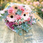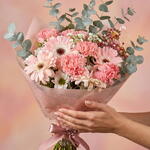 Gerbera - 4 шт. margaritas - 2 шт. clavel - 6 шт. эвкалипт цинерея - 5 шт. белая гипсофила - 1 шт. гипсофила розовая - 1 шт.