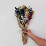 Прекрасная композиция из стабилизированных цветов, которая привнесет элегантность и неподвластность времени в любое пространство. Этот набор состоит из трёх стабилизированных стеблей эвкалипта, которые добавят естественности, двух высушенных маковых коробочек, которые напомнят о прошедшем лете, и трёх высушенных веток лаванды, которые наполнят воздух успокаивающим ароматом. Яркие краски создают две высушенные ветки синей статицы, две высушенные ветки жёлтого солидаго и три высушенные ветки красной метельчатой мяты, каждый из которых добавляет свой яркий оттенок. Дополняют композицию две стабилизированные ветки белого папоротника, которые создают контраст, и два натуральных стебля фалярис, которые добавляют текстуру. Эта стабилизированная цветочная композиция – свидетельство вечной красоты природы, идеально подходящая для украшения любого интерьера.