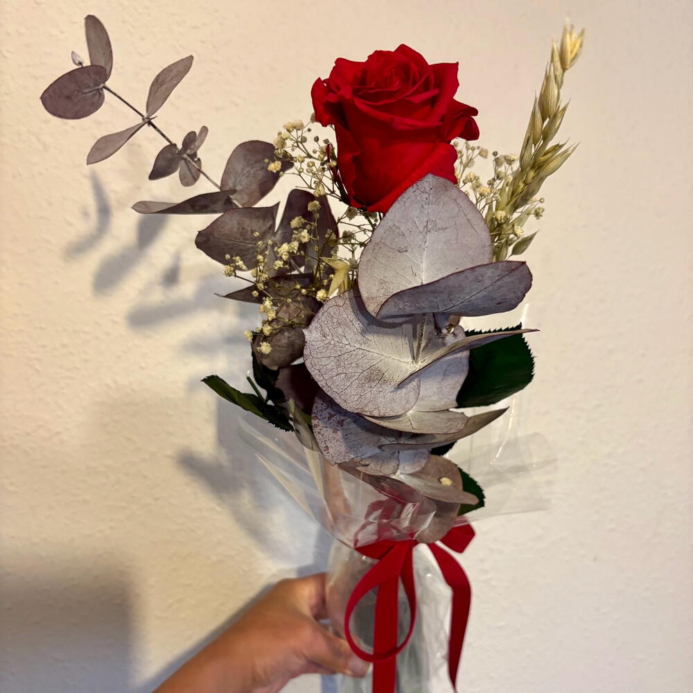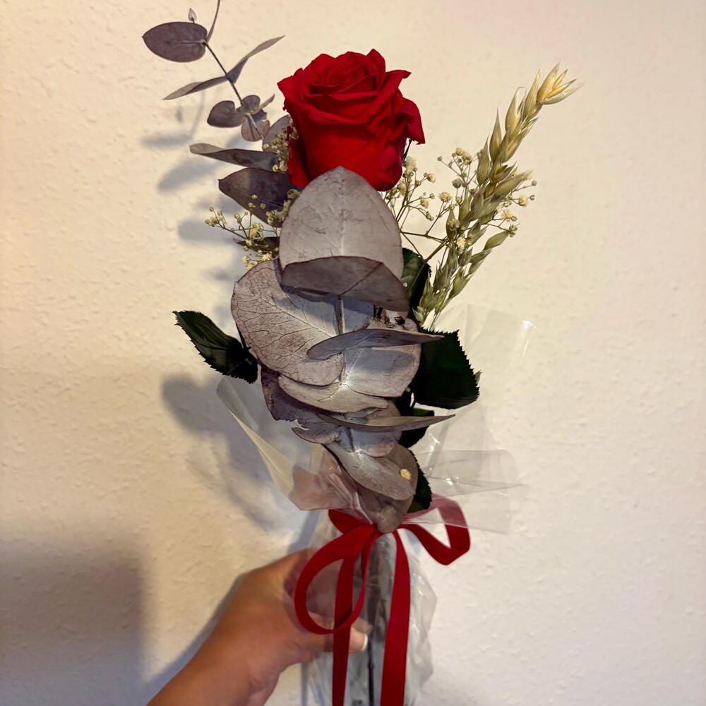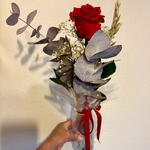 Красная вечная роза, представленная в сопровождении стабилизированных цветов. Элегантный и вневременный подарок, чтобы выразить искренние чувства. Длительность: До 2–3 лет в идеальном состоянии, без воды и без ухода. Значение: Подарить вечную розу символизирует любовь, которая не вянет, обязательство, страсть и обещание «навсегда».