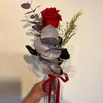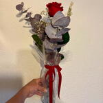florero de cristal - 1 шт. стабилизированная красная роза - 1 шт. паникулата белая стабилизированная - 1 шт. eucalipto cinerea preservado - 2 шт. бархатный бант - 1 шт. стабилизированный ячмень натурального цвета - 2 шт.