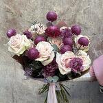 Limonium - 3 шт. claveles (dianthus) - 7 шт. розовые розы - 12 шт. кремоны - 5 шт.