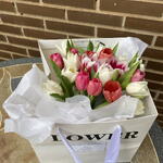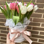 Эта элегантная цветочная композиция содержит 18 прекрасных тюльпанов белых и розовых оттенков. Круглая перламутровая коробочка добавляет изысканности и элегантности. В набор также входят три листа нежной белой папиросной бумаги, лента и открытка для написания персонального сообщения. В качестве завершающего штриха, композиция упакована в потрясающий подарочный пакет с цветочным дизайном, что делает ваш подарок по-настоящему особенным.