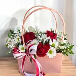 Un diseño delicado y elegante en tonos rojos y blancos, ideal para expresar amor, gratitud o celebrar momentos especiales. Presentado en una moderna caja con asas decorativas, este arreglo añade un toque de sofisticación a cualquier ocasión.