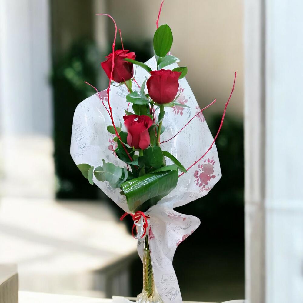 Этот нежный букет из 3 красных роз символизирует любовь, страсть и элегантность. Идеально подходит для выражения искренних чувств по любому особому поводу.