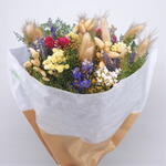 Дикий букет, полный деревенского очарования и природных красок. Сухоцветы золотистых, фиолетовых, красных и белых оттенков в сочетании с овсяными стеблями и заячьим хвостом создают уютную композицию, которая будет украшать и благоухать месяцами. Идеально подходит в качестве подарка любителям природы или для создания тепла в доме. Его не нужно поливать; просто храните его в сухом месте, вдали от прямых солнечных лучей и влаги, чтобы сохранить форму и цвет.