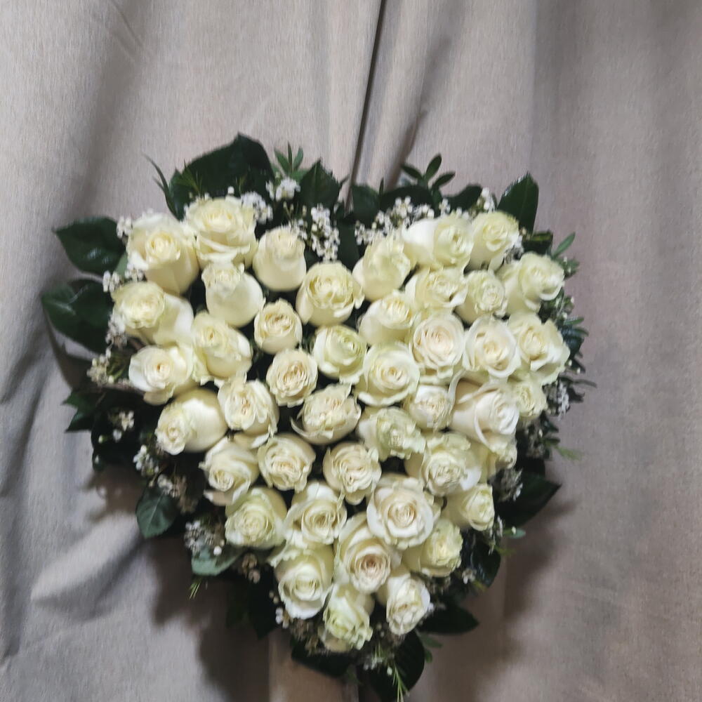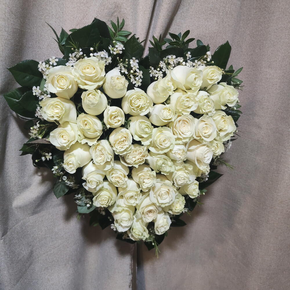 Сердце из белых роз