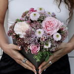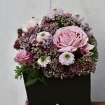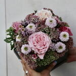 Box - 1 шт. Limonium - 1 шт. Sedum - 4 шт. santini - 1 шт. rosa - 3 шт. clavel - 1 шт. chamelacium - 1 шт.