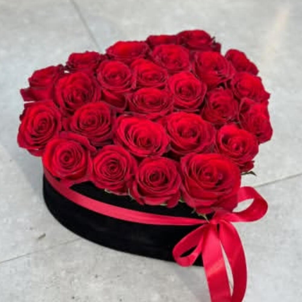 rosas rojas - 25 шт. коробка в форме сердца (цвет варьируется в зависимости от наличия) - 1 шт.