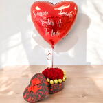 Этот прекрасный набор — идеальный подарок, чтобы выразить свою вечную любовь. Он включает в себя металлический воздушный шар в форме сердца с надписью «Я всегда хочу быть рядом с тобой», символизирующей вашу преданность и безусловную привязанность. Декоративная коробка, украшенная ярким рисунком любви и элегантной красной лентой, содержит изысканную композицию из свежих красных роз и вкусных золотых шоколадных конфет. Каждая деталь продумана до мелочей, чтобы создать уникальный подарок, сочетающий в себе романтику, нежность и стиль. Удивите своего любимого этим подарком, полным эмоций и любви. Удивите своего любимого этой оригинальной коробочкой ко Дню святого Валентина из 12 красных роз и 18 шоколадных конфет Ferrero. В комплект входит фольгированный воздушный шар в форме сердца с персонализированным именем, напечатанным на виниле.