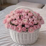Изысканная и романтичная композиция, состоящая из 60 пионов в нежно-розовых тонах, аккуратно расположенных в деликатной белой корзине, сплетённой вручную. Её округлая и пышная форма создаёт гармоничный и обволакивающий силуэт, который передаёт нежность, элегантность и свежесть. Каждый пион, со своими шелковистыми и объемными лепестками, добавляет текстуру и движение, превращая этот дизайн в центральный элемент, идеально подходящий для особых торжеств, незабываемых подарков или оформления эксклюзивных мероприятий.