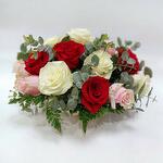 El Centro de Rosas Variadas es un arreglo floral artesanal, diseñado con elegancia y armonía en cada detalle. Combinando rosas naturales rojas, blancas y rosas, acompañado de verdes decorativos como eucalipto y helecho, este centro de flores es ideal para regalar amor, gratitud o decorar cualquier espacio con distinción. Perfecto para celebraciones, aniversarios o mesas de eventos. Recomendaciones de cuidado: Este centro floral debe mantenerse en un lugar fresco, alejado del sol directo y de corrientes de aire. Añade un poco de agua a la base floral cada 1-2 días para mantener la frescura de las rosas. No es necesario mover las flores, ya que están bien fijadas en esponja floral húmeda.