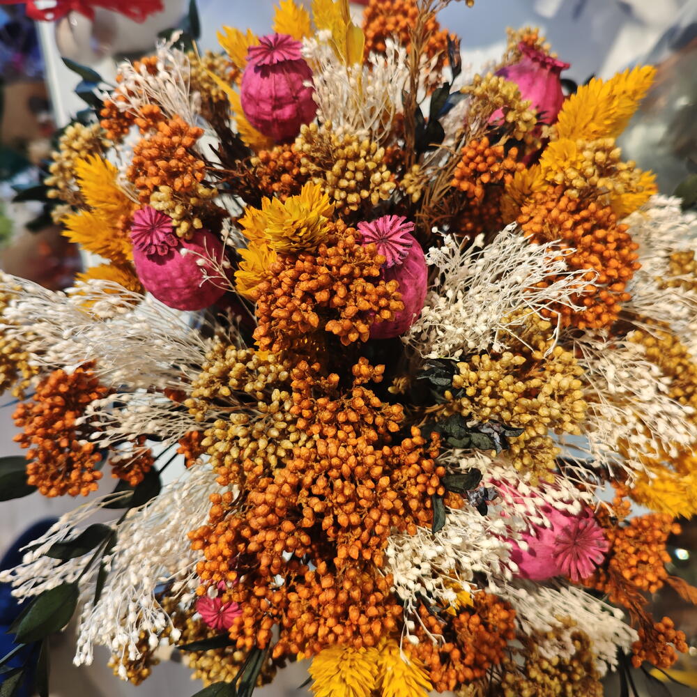 papaver - 5 шт. broom preservado - 6 шт. eucalipto parvifolia preservado - 5 шт. стабилизированный цветок риса - 10 шт. основание из веревки - 1 шт.