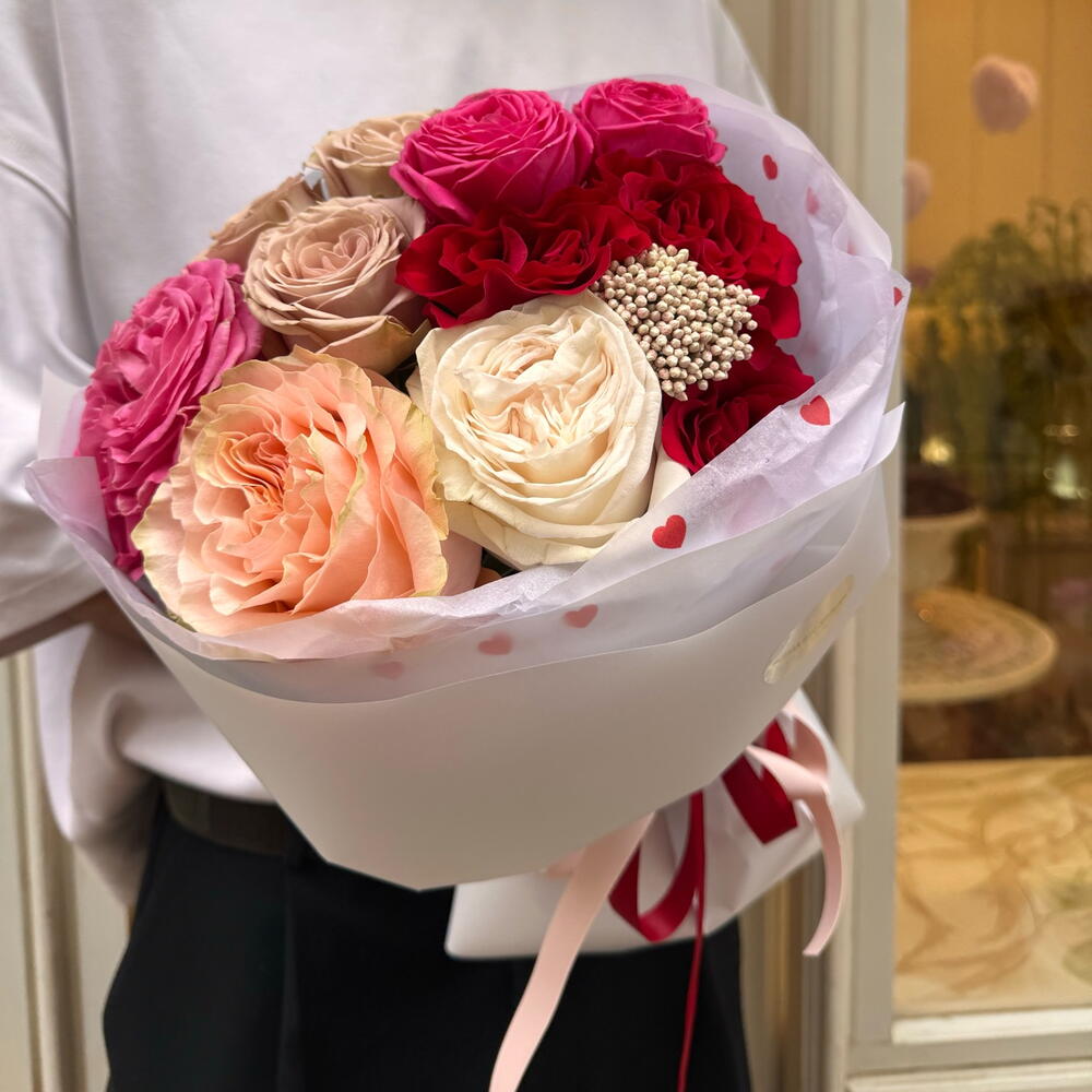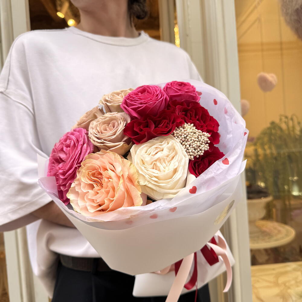 I do not recommend this store. The bouquet is beautiful, but the delivery is terrible: the courier was an hour late, and the store did not respond. I had to wait an entire hour in the cold without knowing whether the order would arrive or not.