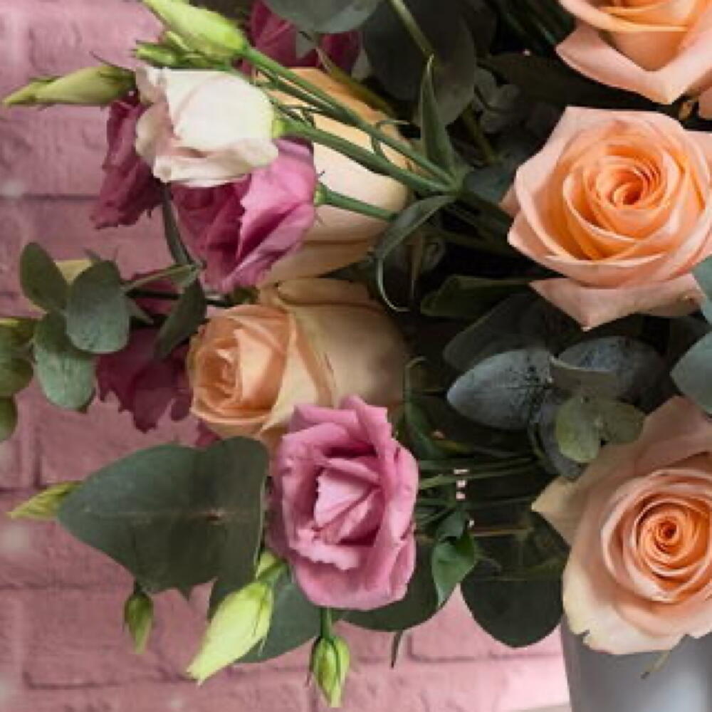 eucalipto - 10 шт. розы мелон - 25 шт. лизиантус лиловый - 20 шт.