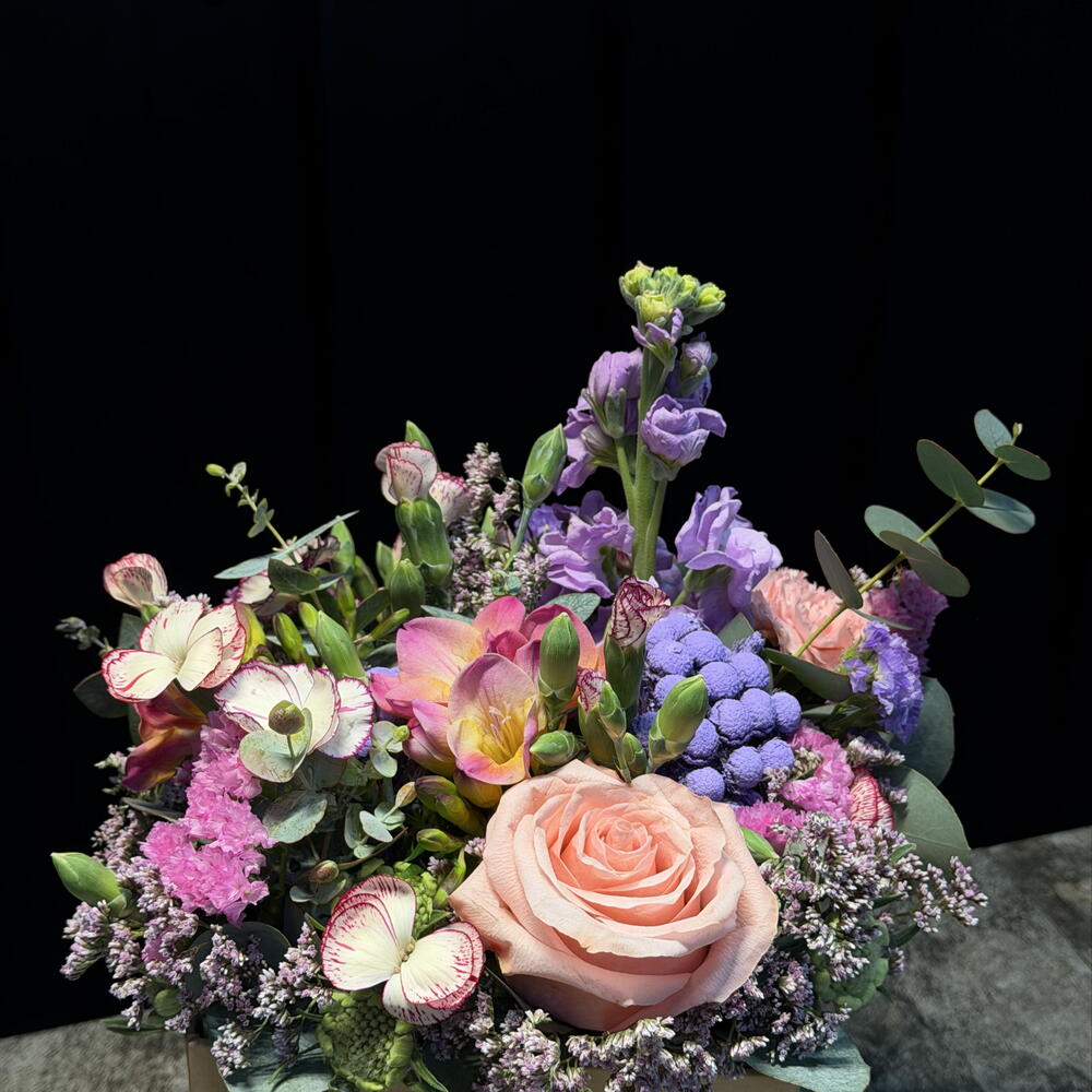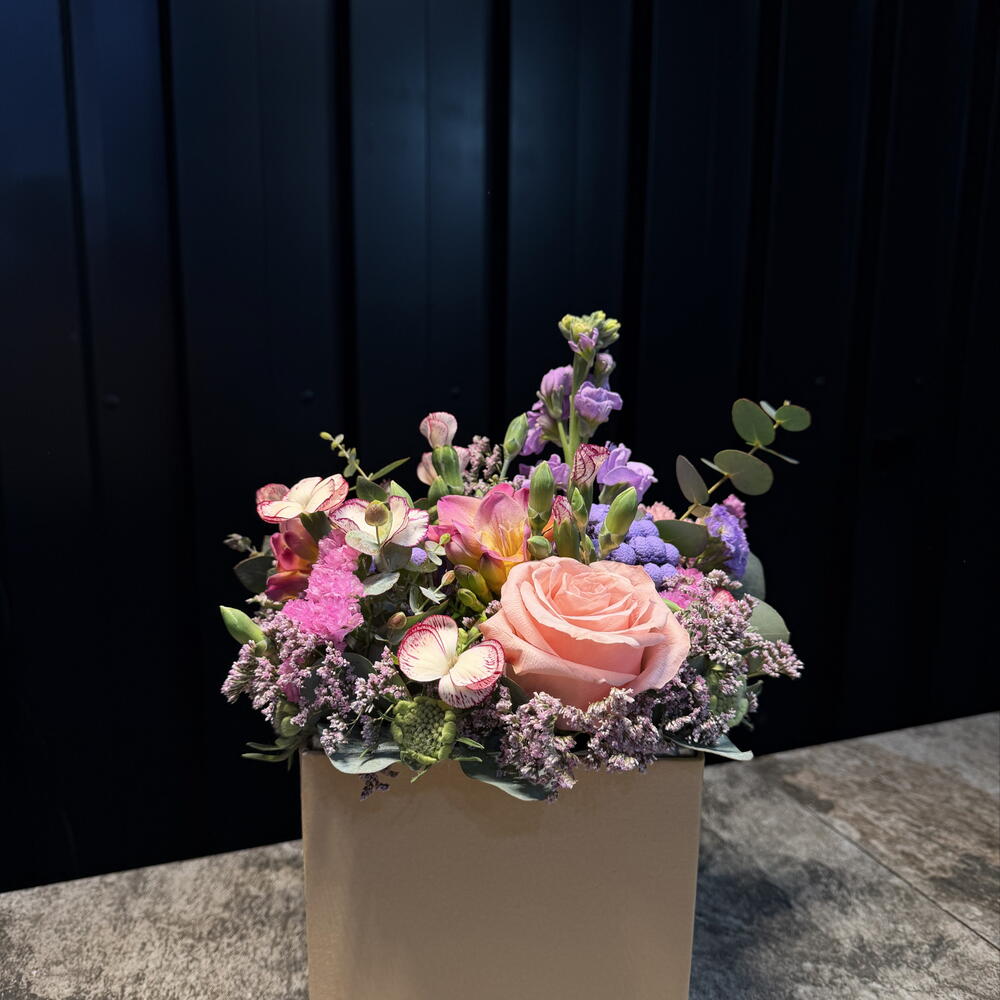 Composición elegante de rosas frescas. Perfecta para expresar amor, agradecimiento o sorprender a alguien especial. Preparada con flores de alta calidad y presentada con mucho cuidado.