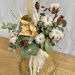 algodón - 1 шт. белый лагурус - 9 шт. эвкалипт цинерея - 1 шт. белый деревянный цветок - 1 шт. цветок из натуральной кедровой древесины - 1 шт. коричневый мак - 3 шт. белая лаванда - 3 шт. белый амарант - 1 шт.