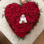 Сердце из 101 роз с плюшевой игрушкой