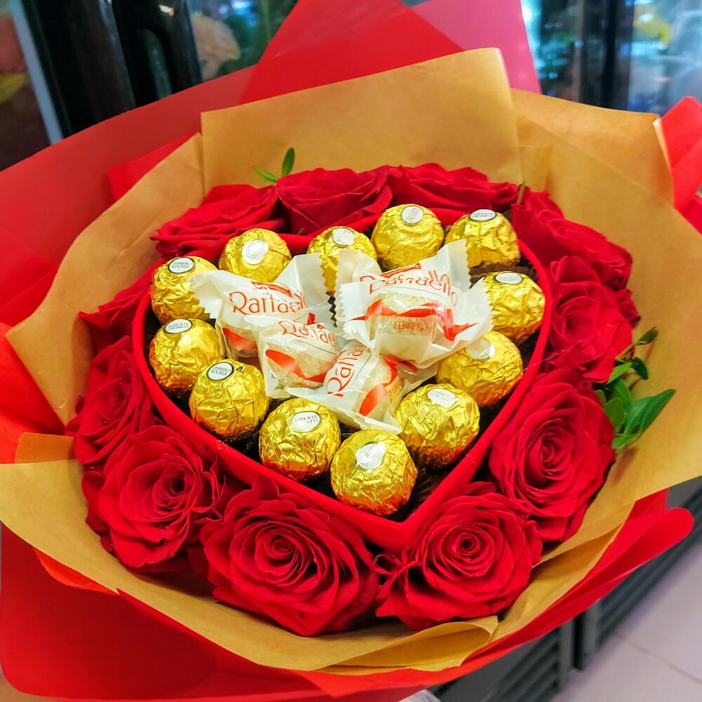 Ferrero rocher - 12 шт. Rafaello - 5 шт. rosas - 11 шт. коробка-сердце - 1 шт.