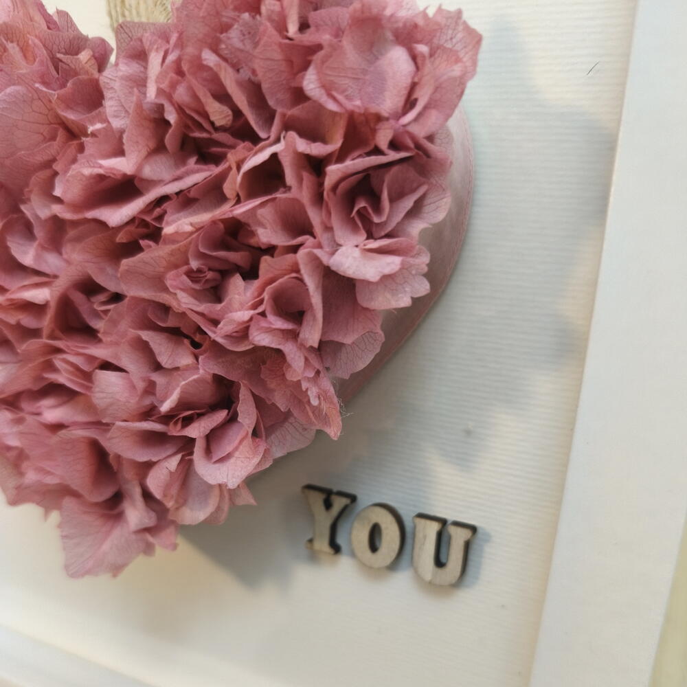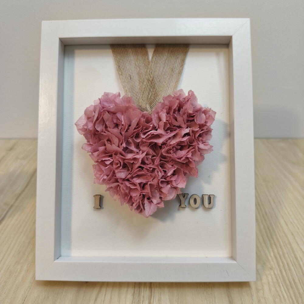 Картина сердце из стабилизированной розовой гортензии – Я люблю тебя