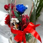 синяя стабилизированная роза - 1 шт. декоративные сухие красные и белые цветы - 4 шт. натуральный зелёный мох в основании - 1 шт.