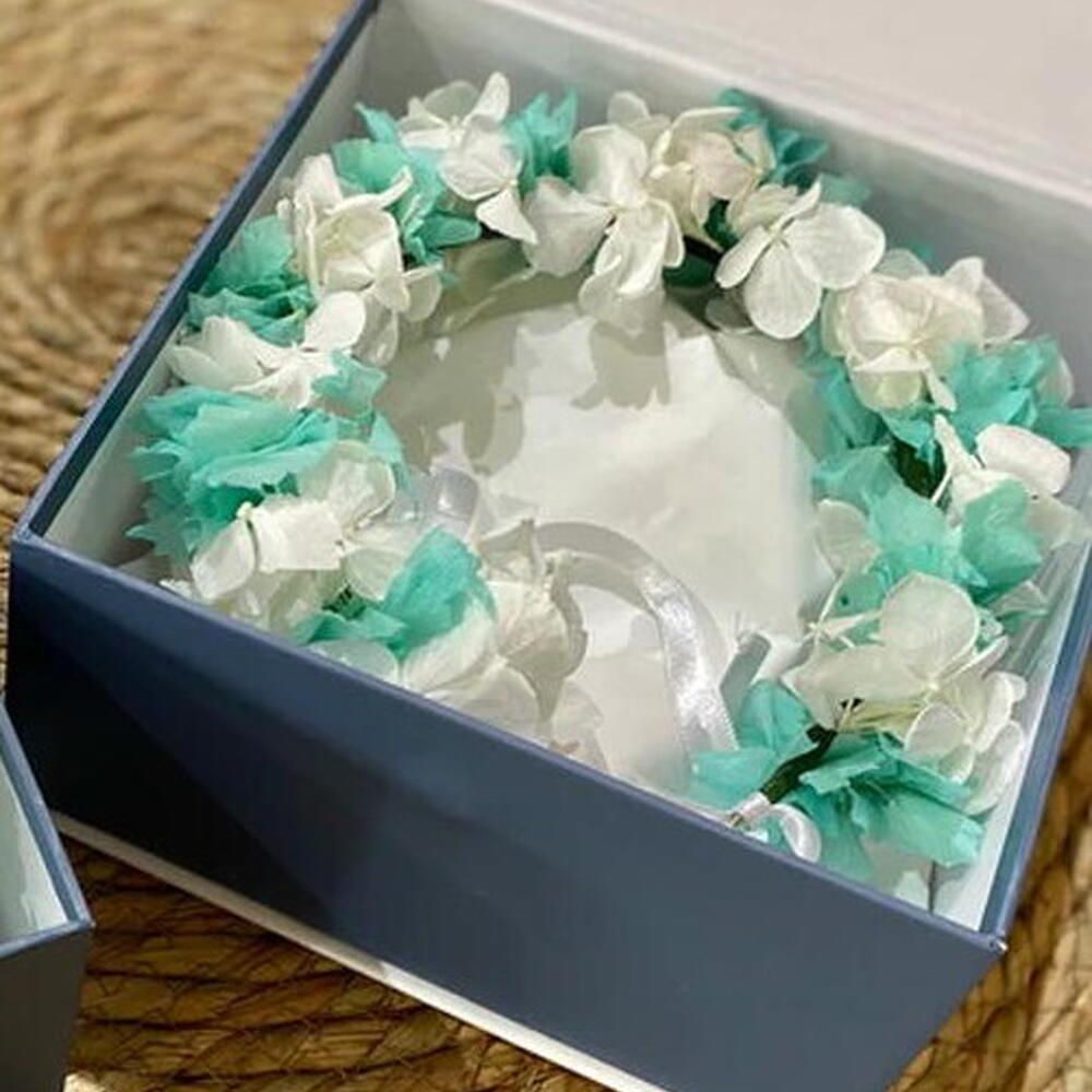 Ободок для головы с гортензией, 2 цвета Ободок для головы с стабилизированной гортензией в двух цветах, украшенный атласным бантом в тон. Доступен в различных цветах: белый, кремовый, светло-розовый, светло-голубой и морской волны. Продаётся поштучно