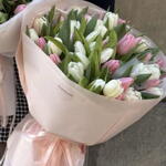 тюльпан белый и розовый - 51 шт.