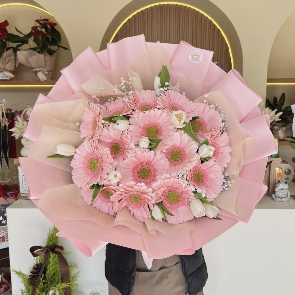 Gerbera - 25 шт. paniculata - 1 шт. тюльпан - 10 шт. корейская бумага - 1 шт.