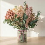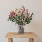 Ваза стандартного размера с натуральными стабилизированными цветами в пыльных тонах – вневременный декоративный цветочный центр