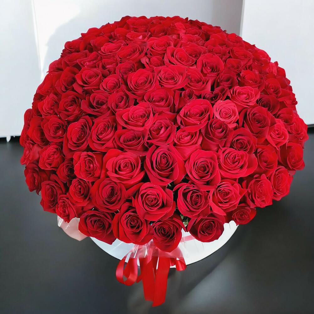 rose - 150 шт. ribbon satin - 1 шт. round box - 1 шт.