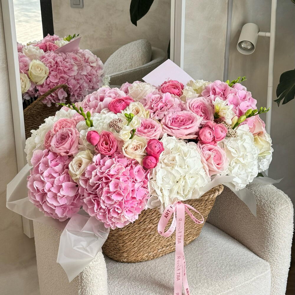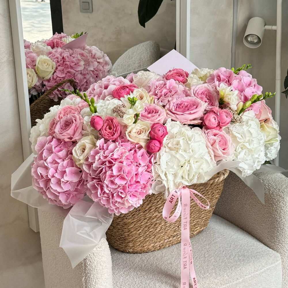Basket - 1 шт. hortensia - 10 шт. fresia - 7 шт. roses - 18 шт.