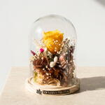 eucalipto - 1 шт. paniculata - 1 шт. гортензия - 1 шт. стеклянный купол - 1 шт. жёлтая стабилизированная роза - 1 шт.
