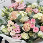 Eucalyptus - 5 шт. Spray rose - 8 шт. Lisianthus - 10 шт. rose - 5 шт.